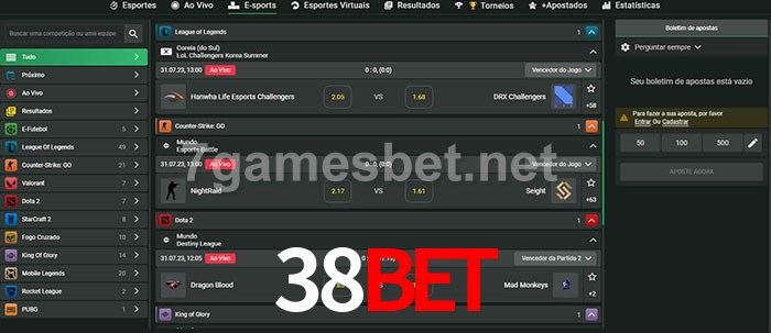 O 38BET oferece uma grande seleção de opções de apostas em e-sports com probabilidades competitivas